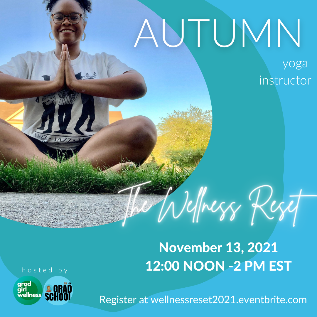 Meditation with Cierra (@_cierrajade_ ) will help calm the mind, relax the body, and create space to unlock creativity by remaining present. Yoga with Autumn (@just.adia) will emphasize how movement can be a tool for emotional, physical, and mental wellness. Journaling with Angela (@gradgirlwellness) will hold space for intentional reflection and goal setting through writing. Additionally, participants will receive a downloadable “Wellness Workbook” with additional tips and resources on how to prioritize wellness as a grad student.